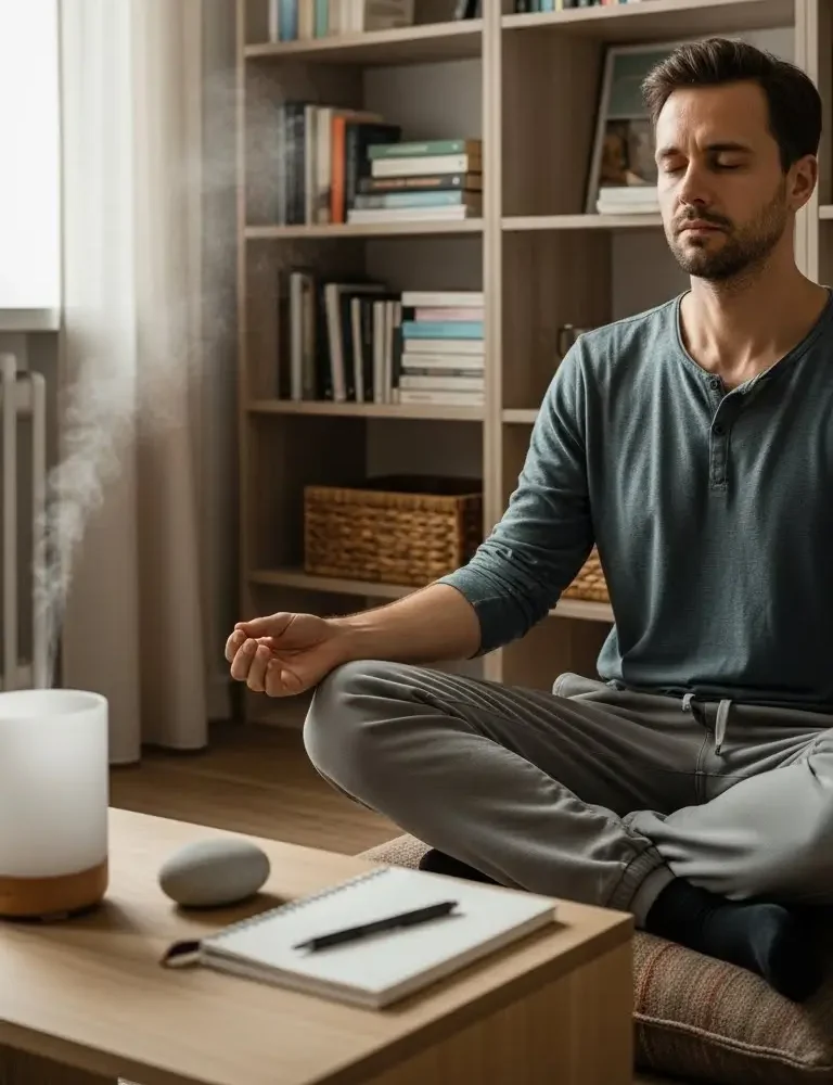 São técnicas guiadas de regulação emocional baseadas em ciência — não exige “meditar”.